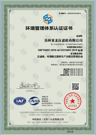環境管理體系認證證書